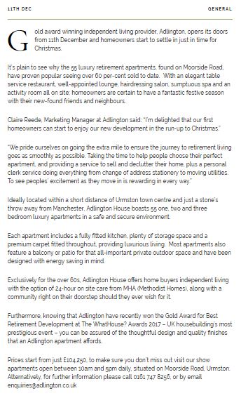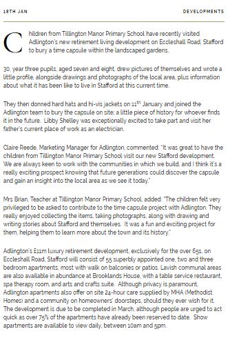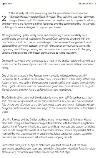 Here are a few news items which were produced for a well-known retirement living brand, these were also published within local newspapers.