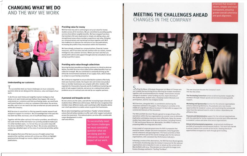 The following communications were developed for the trading arm of Students’ Unions, which later included pieces supporting the student movement. Items produced were: commercial marketing communications strategy, Convention and AGM event communications, trade show items, point of sale, membership magazine.